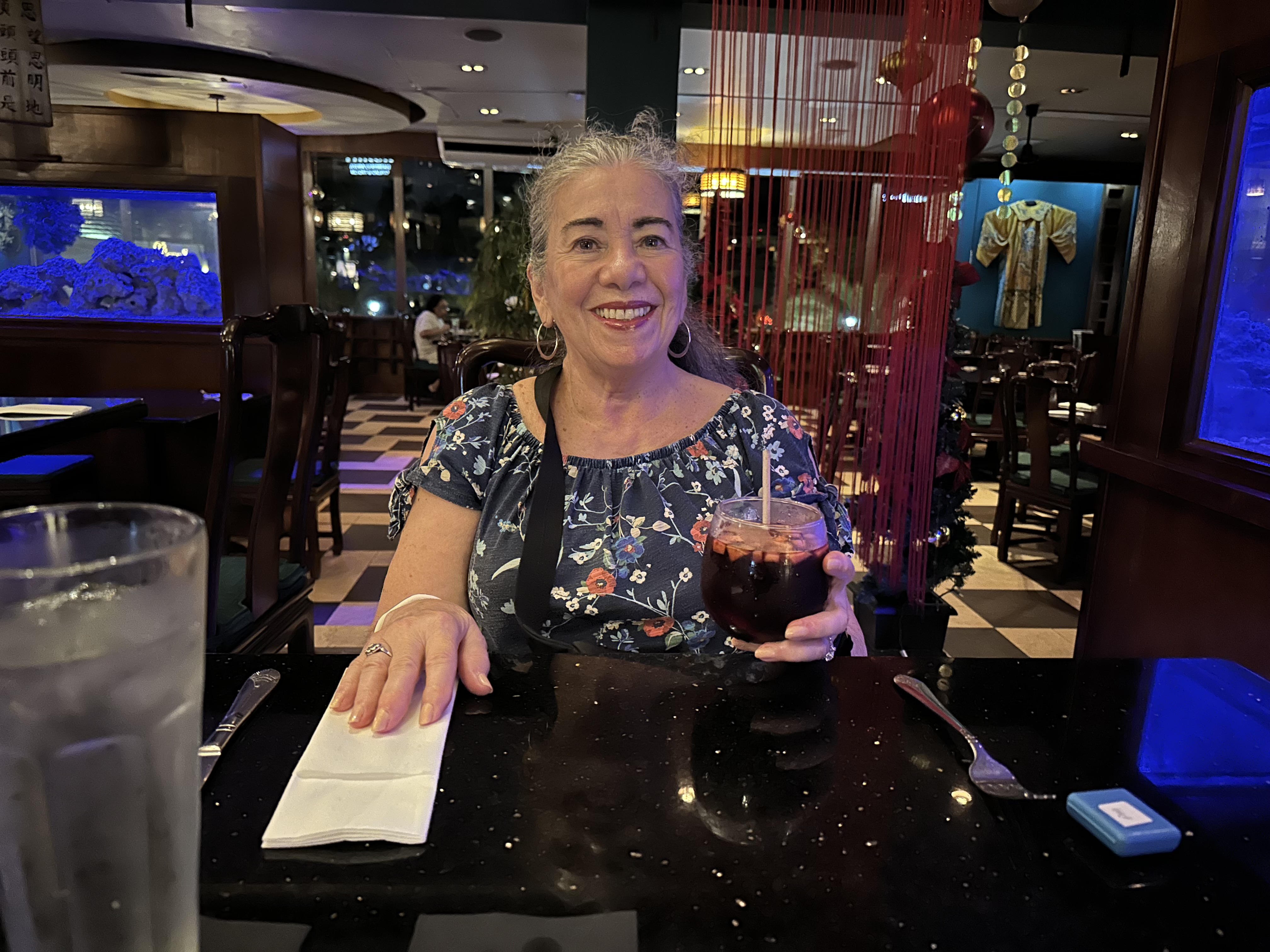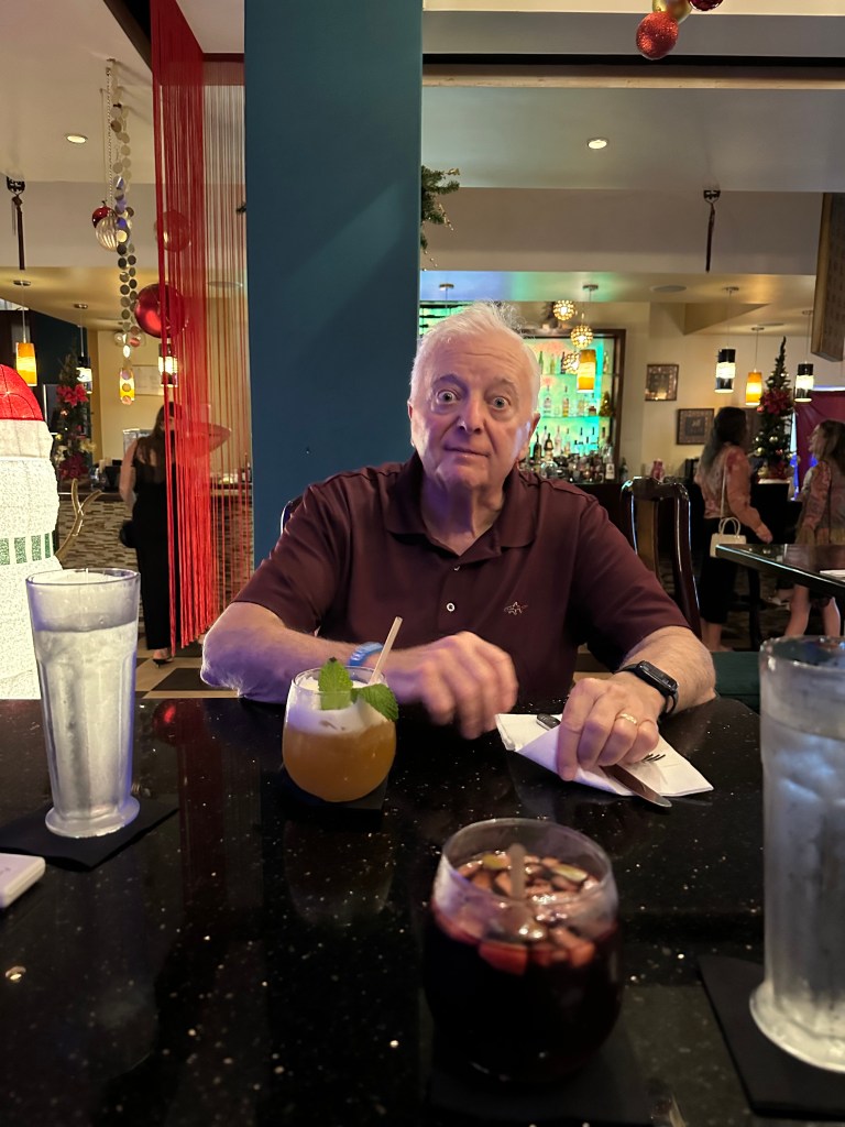 Here we are in a few different restaurants enjoying a drink and some of the food we ate.