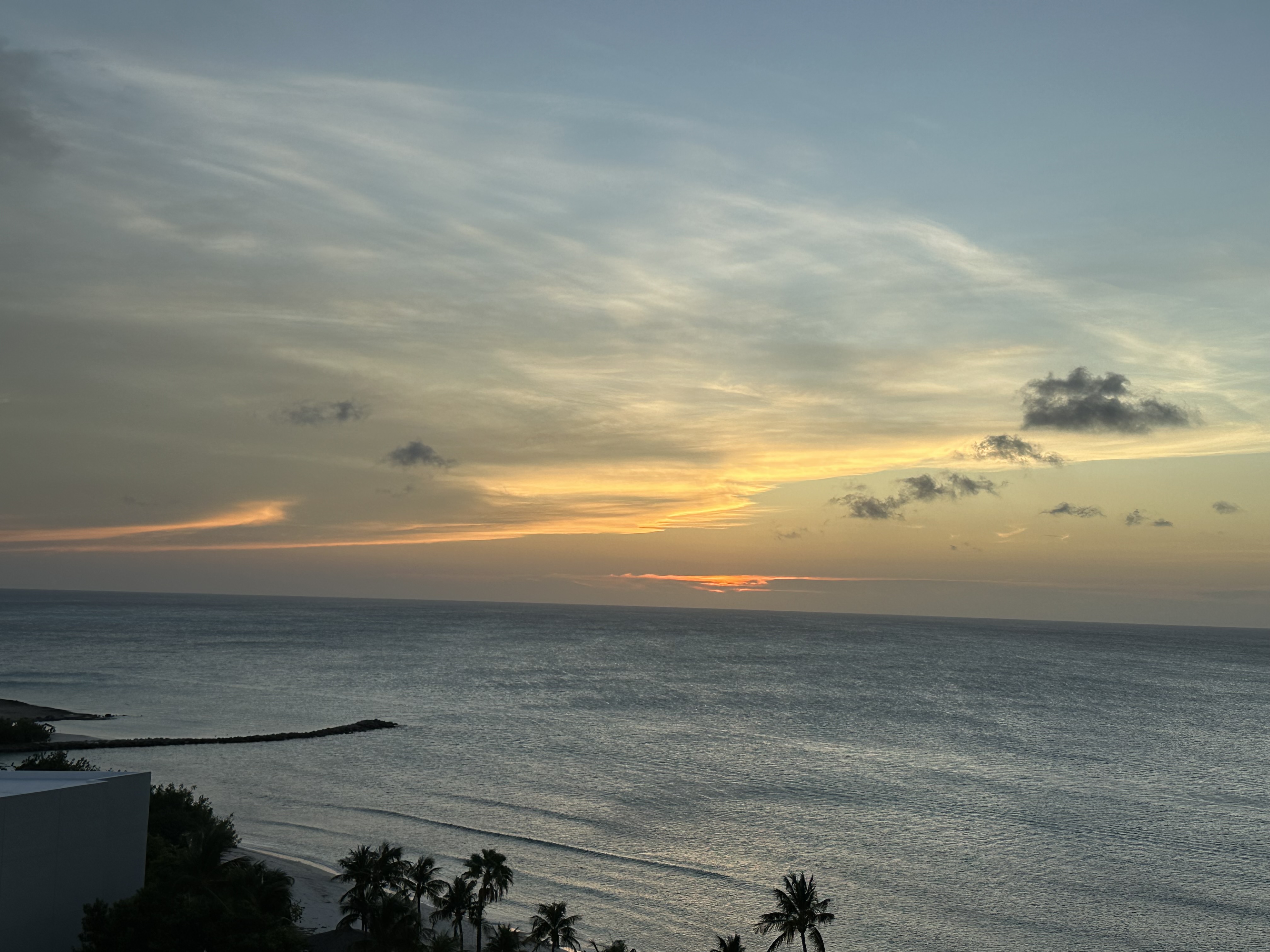 The weather had been overcast but no rain making for no good sunsets the first week. Since then the weather has been sunnier and hotter. We were fortunate enough not to be in the hurricane belt when the latest storm was in the Caribbean. We did experience some high waves, winds and parts of the beach were washed away causing a couple of palapas to fall over. No one was injured, thank God. We also lost one of the sidewalks near our resort. All will be repaired in Aruba time.