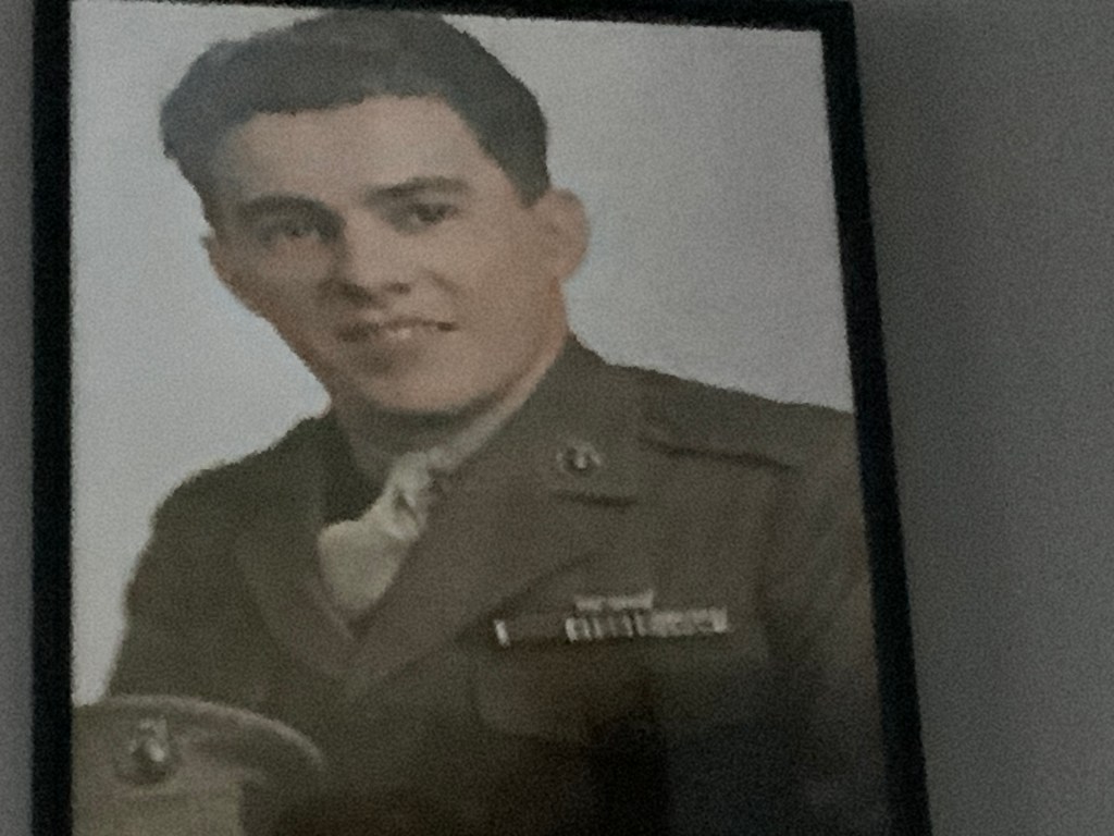 Here’s a photo of my handsome father. Unfortunately it is not a clear one but it is the only one I have with him in uniform marching off to war. I loved him dearly and was proud of him and his service. I miss him and his crazy sense of humor. He died in 2001.