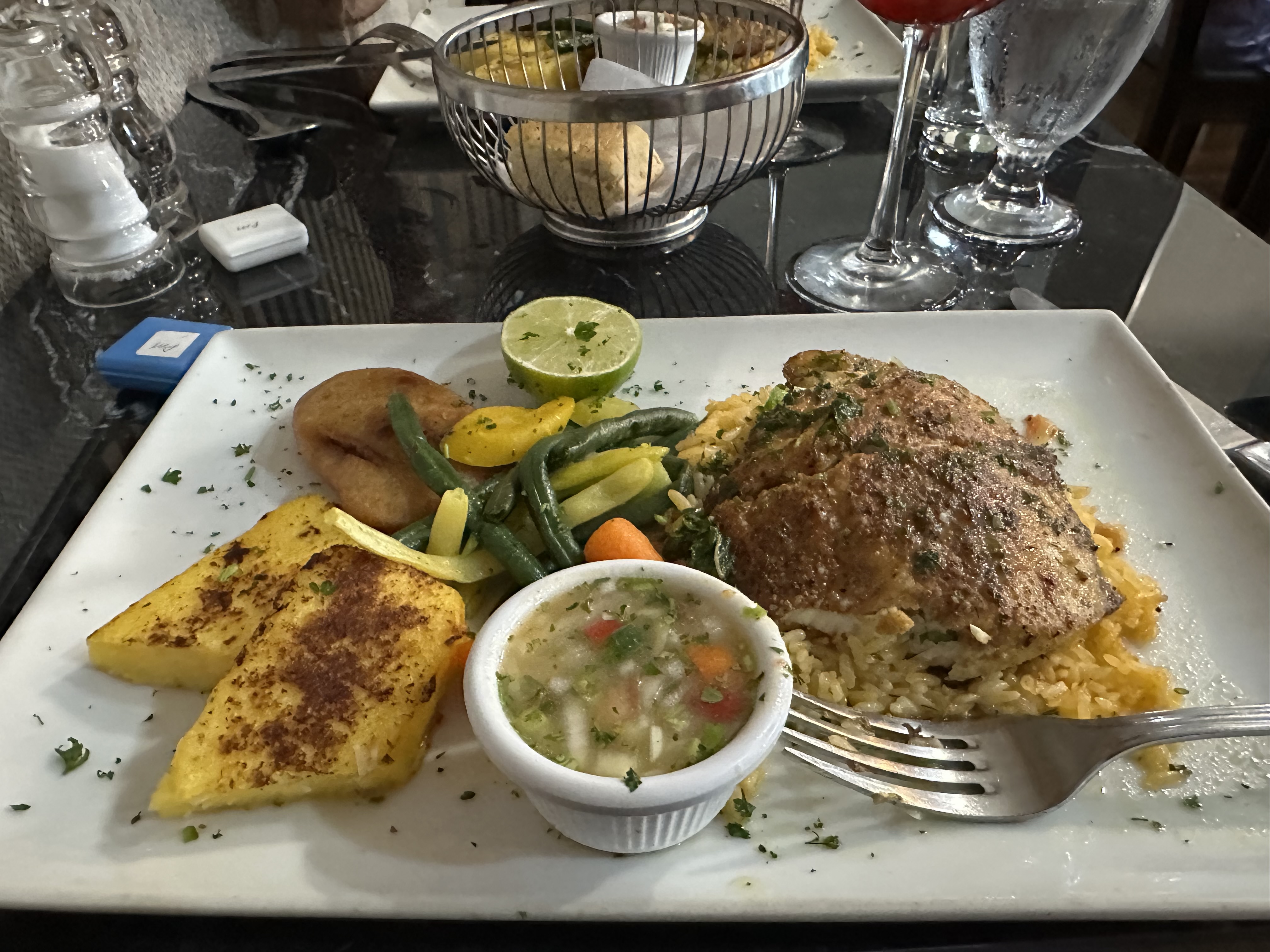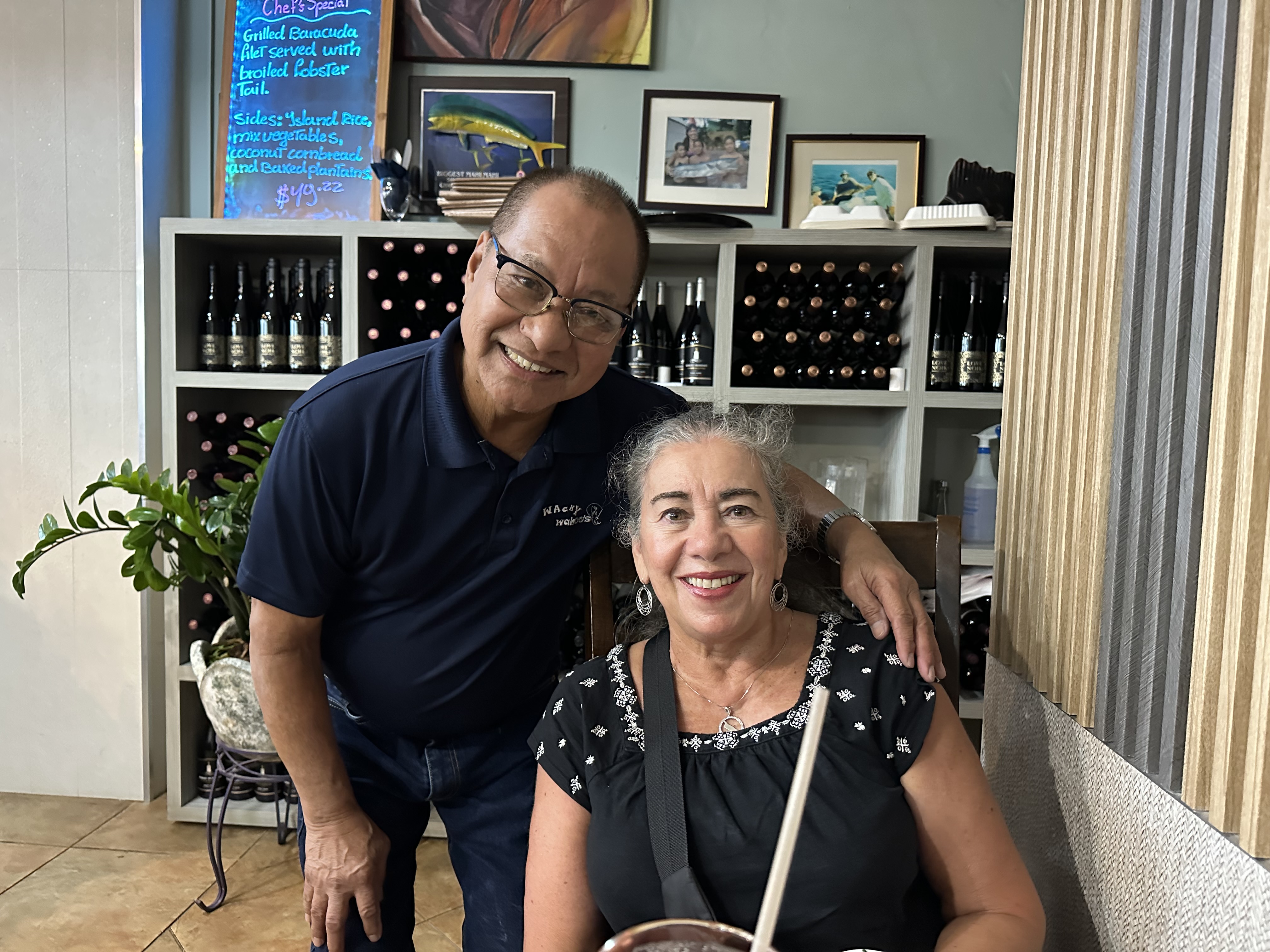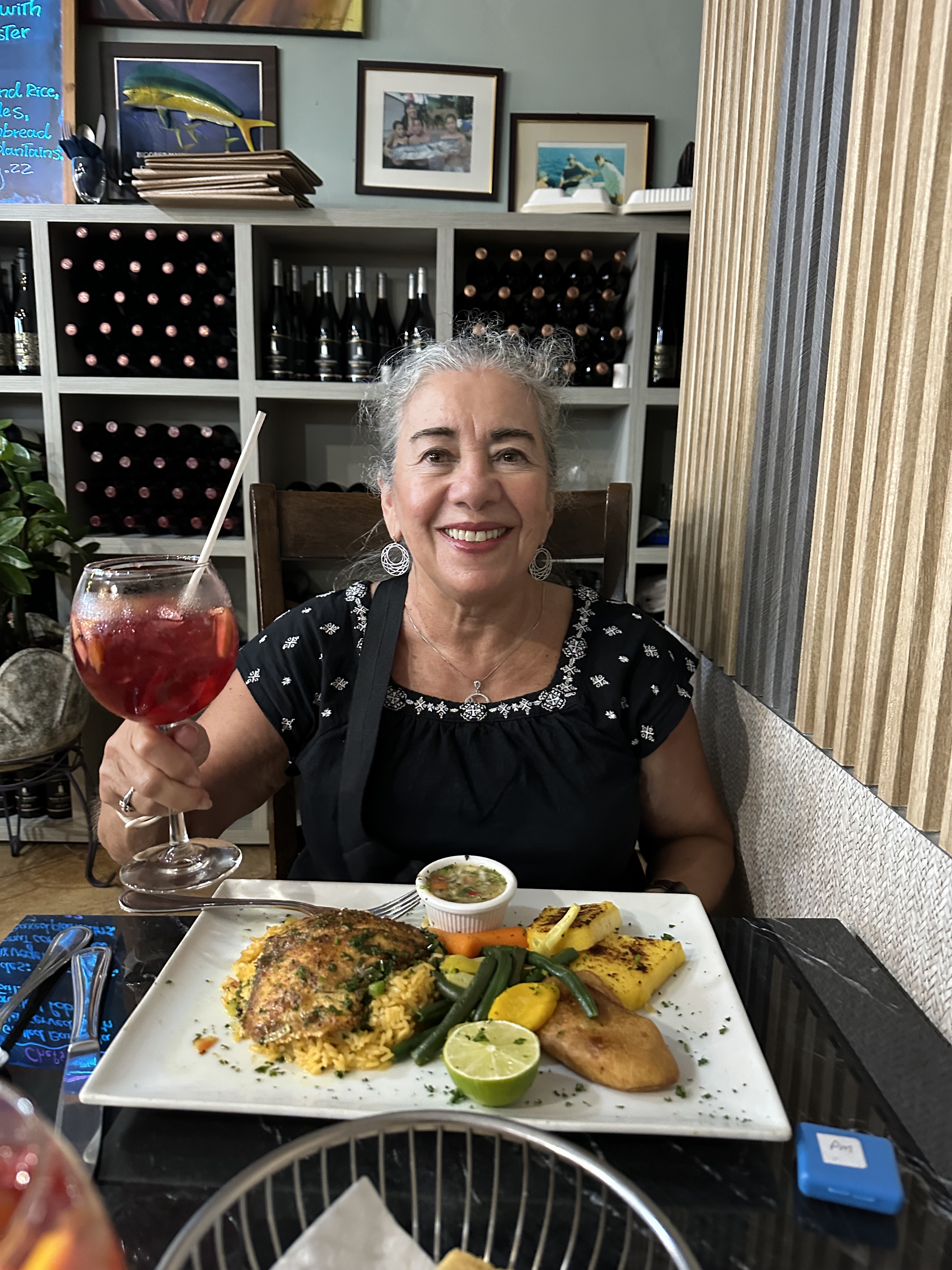 The above photos are of another favorite restaurant, Waki Wahoo, noted for delicious fish and other dishes. I love the barracuda or red snapper. Check out my dish. I ate all my fish but couldn’t finish the rest. It was outstanding as usual! We saw our friend, Rudy, who looks a lot like Cheech Maran of Cheech and Chong. I take a photo with him every year. Such a nice guy and always smiling and cheerful.