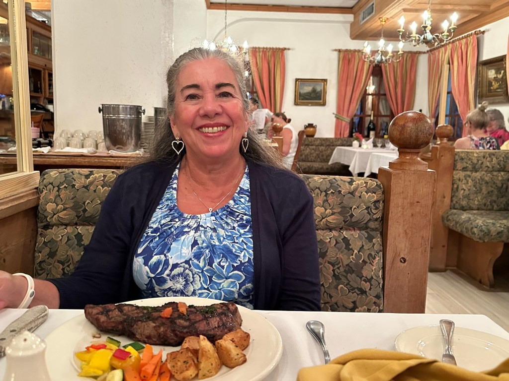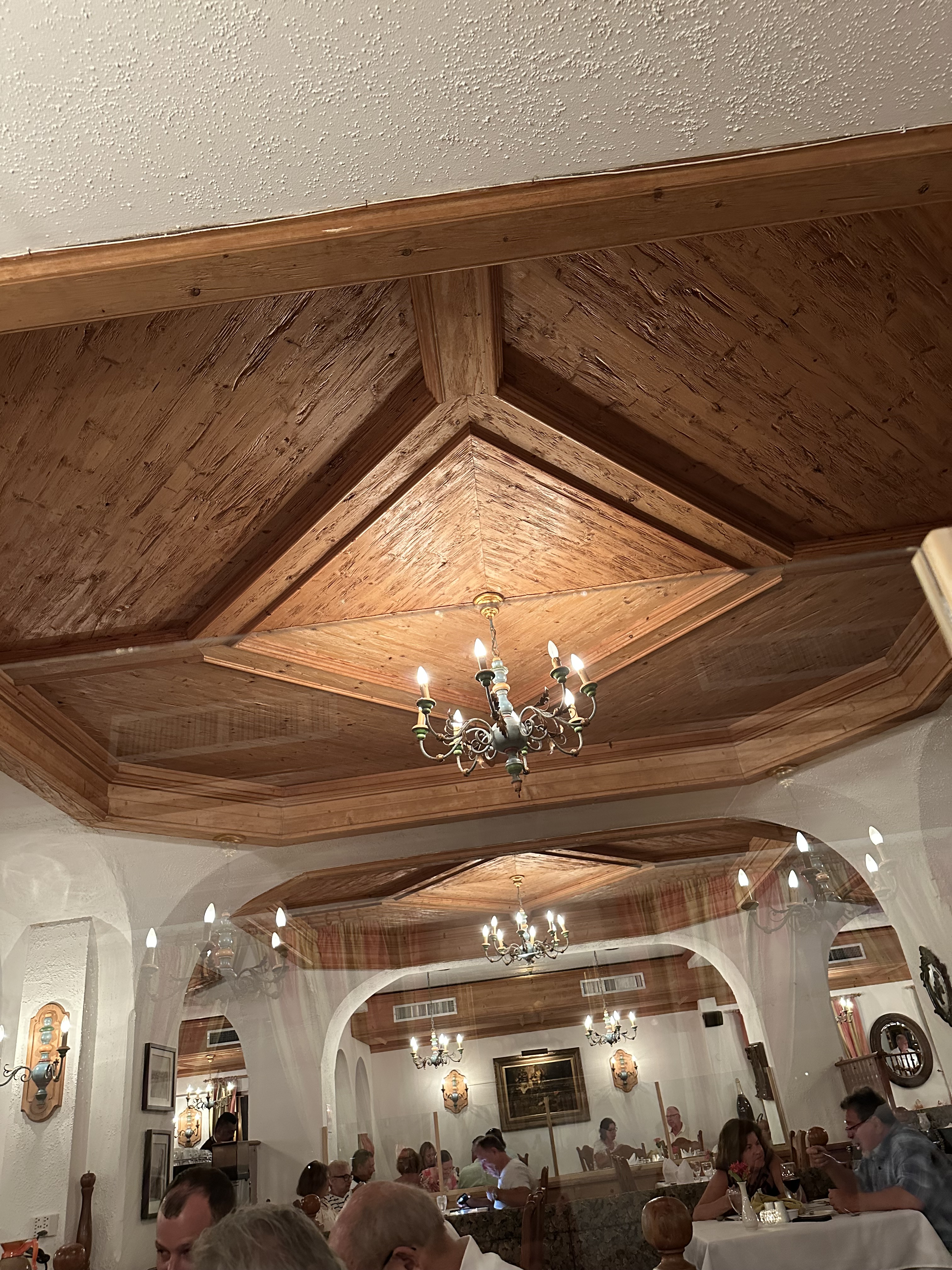 Chalet Suisse is a lovely restaurant on the island that I would highly recommend. The prices are comparable to many other places here. All restaurants have gone up in price as expected. This one has an early bird for $38.00 from salad or soup to dessert. Notice my steak in the above photos. I had to take almost half of it back with me for lunch. It was delicious. I highly recommend this one. We went twice this trip.