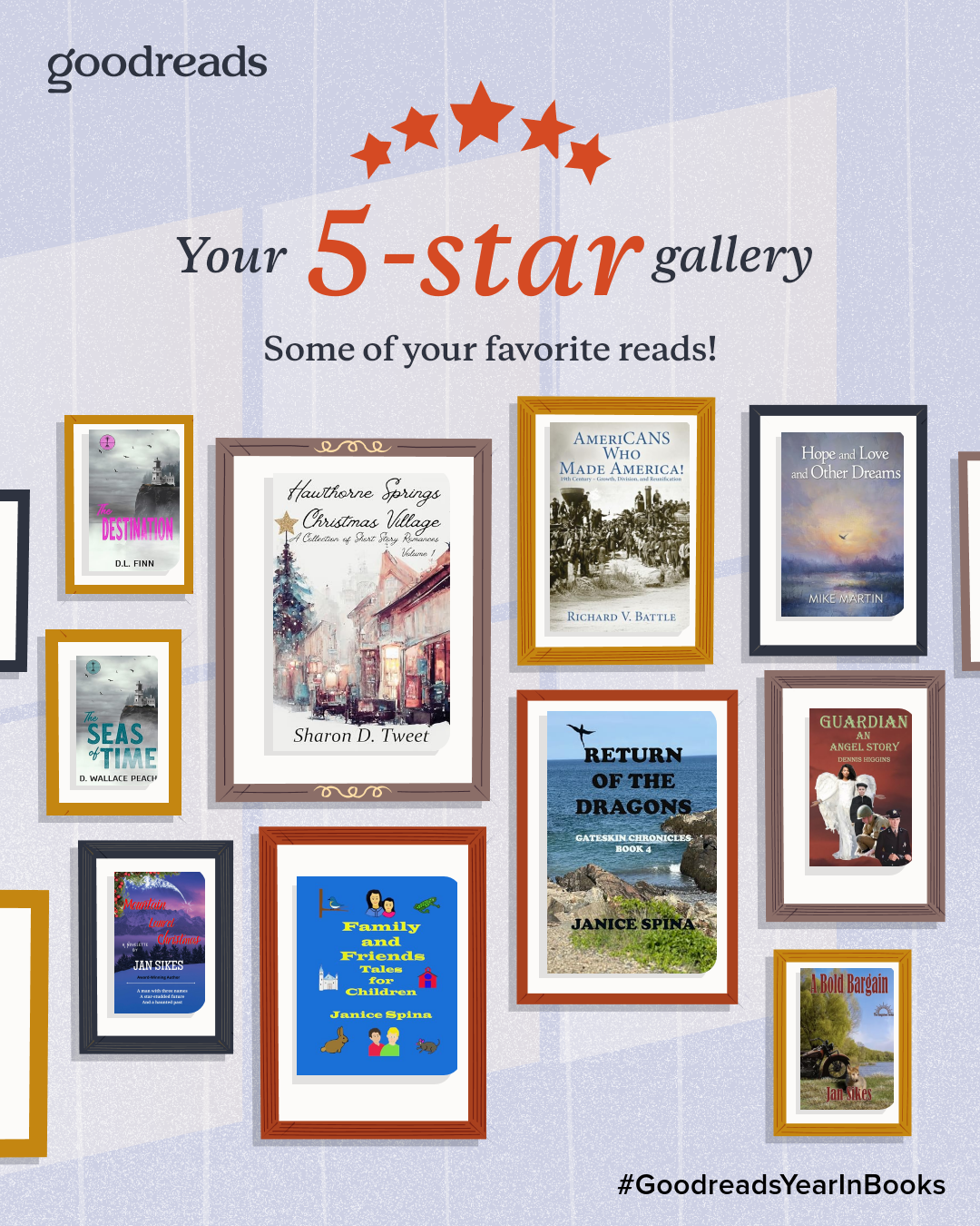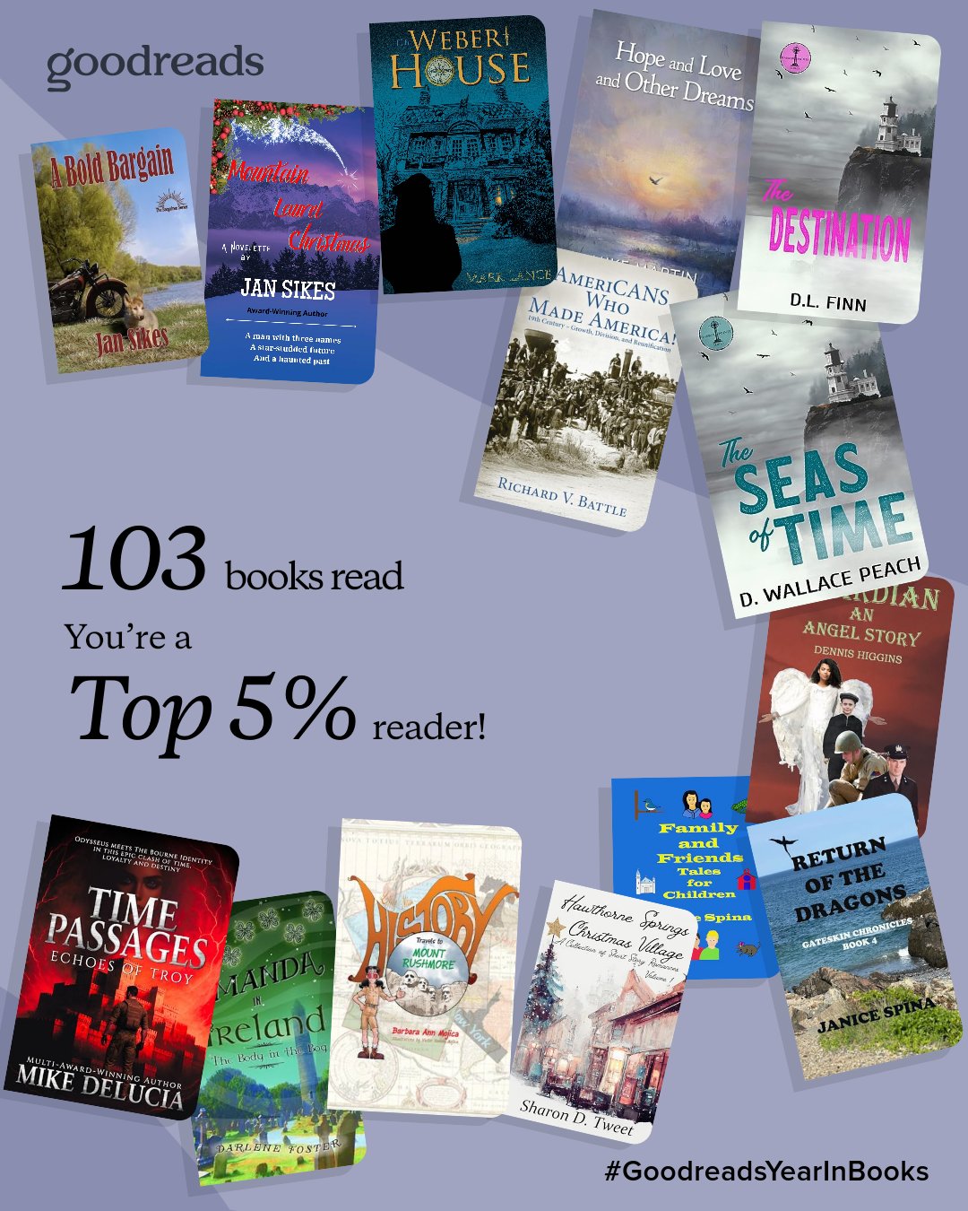 In 2025 I met my goal of three books published and 108 books read and reviewed at present over my goal of 90 books for my Goodreads Challenge.